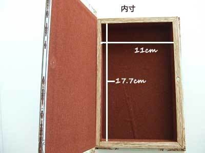 立てかけると、アンティークブックのようなデザインですで、インテリア性もばっちり。マグネットが付いていますので、フタが開いてしまうことはありません。内側はフェルト貼りなので、アクセサリーには安心ですね。