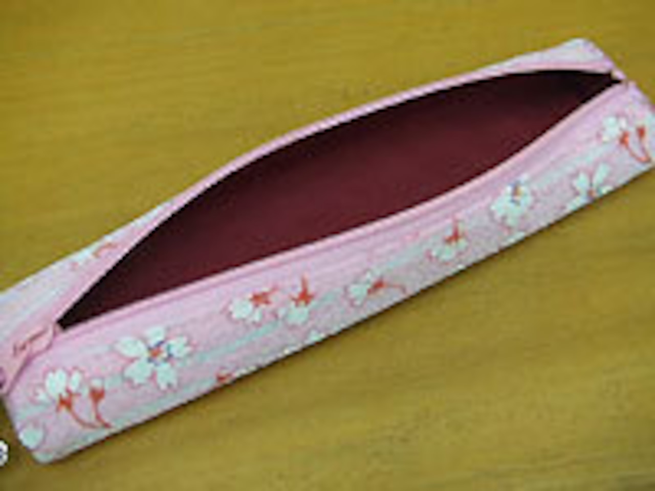 すっきりとした細長いペンケース。縮緬の手触りが優しく、2~3本のペンを入れてバッグにポン!と気軽に使えるフォルムです。