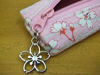 桜の形のファスナーチャームがワンポイント。内側は、エンジのコットン製で汚れが目立ちにくいのがうれしいですね。