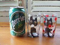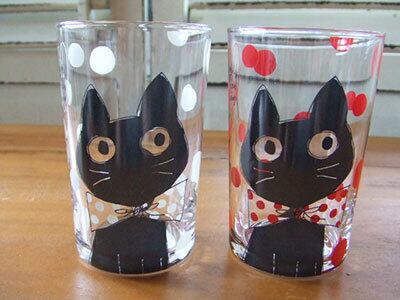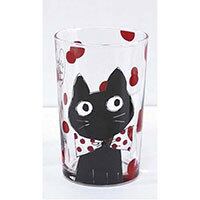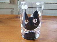 大きな丸い目とリボンが可愛らしい猫グラス。向こう側 に透けて見える長いシッポが楽しい♪