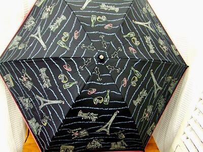 今では初夏から秋の必需品、急な雨にも安心の晴雨兼用タイプ。UVカット、軽量で、収納用袋もついています。エッフェル塔やチーズ、ワインなどフランスをイメージするキュートなイラスト。布製ではないので、雨が降っても染みてこなくて安心です。さらにこの傘は、カラーコーティング加工済み:遮熱・遮光効果に優れ、木陰のような涼しさを演出します。