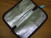 見た目は完全に折りたたんだガーゼハンカチなのですが、内側に薄いアルミシートの二重構造。ペットボトルやチョコレートやキャンディなどの溶けやすいスイーツを冷蔵庫から出して入れれば、ひんやりキープ!また温かいモノもOKです。