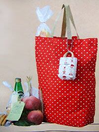 ミニサイズのバッグの中には、折りたたみ式のトートバッグが入っています。旅行や普段のお買い物に、バッグにポン!とひとつ入れておけば、急に荷物が増えたときに便利です。ナイロンで軽量、邪魔にならないサイズです。また、毎日のお買い物に、スーパーのポリ袋を使わず、これを使えば「エコ生活」。プレゼントにも人気です。