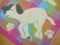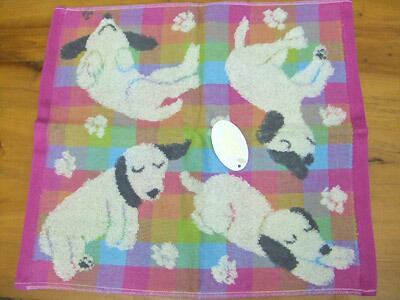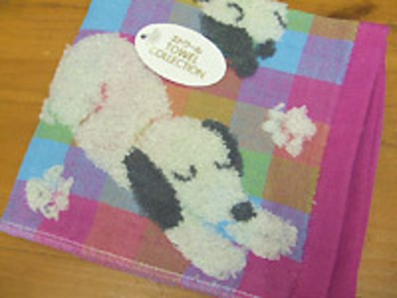 リラックスしたワンコがかわいいハンドタオル。ぐっすり眠った姿に癒されます。4つに折ったときの柄の出方がとってもキュート。どこで折るか研究してみてくださいね。あまりに可愛いので、使うときに見せびらかしたくなりますよ。