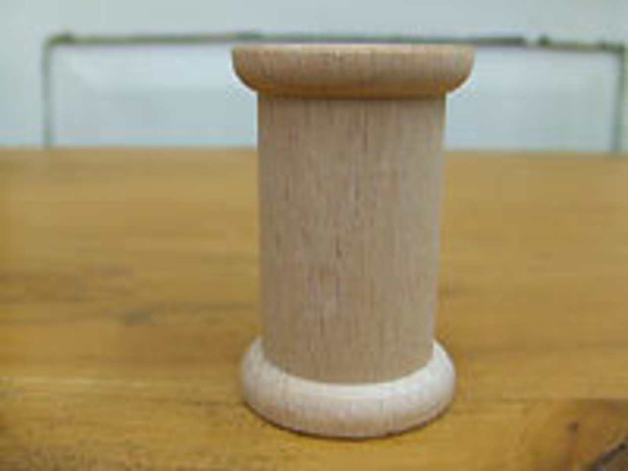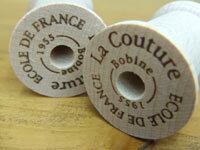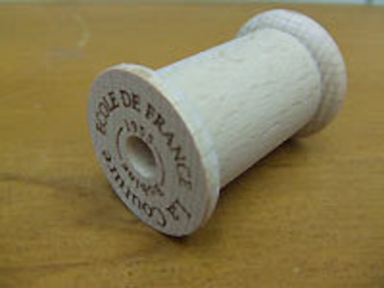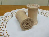 焼き印が上下に入ったおしゃれなボビン(糸巻)。