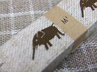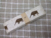 ゾウ:麻の生成地に茶のゾウのプリント。かわいくなりすぎないので、お洋服やインテリア、小物など幅広く使えます。1個だけを切って、ワンポイントのタグにするのもおススメ。