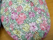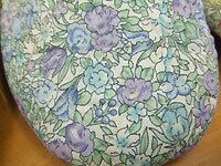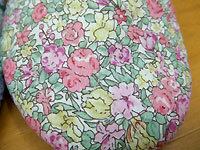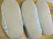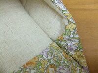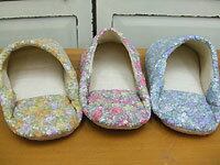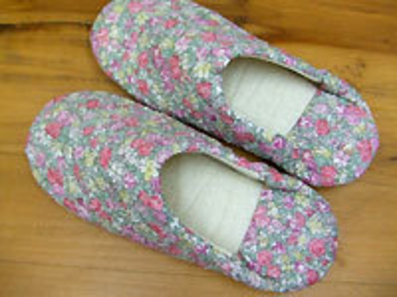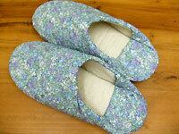 足入れ部分はさらっとした、麻風コットン。表面はフラワー模様のコットンキルティング生地を使った爽やかなスリッパです。底面はなめし革風生地で、静音タイプ。軽量でこれからの季節にピッタリです。